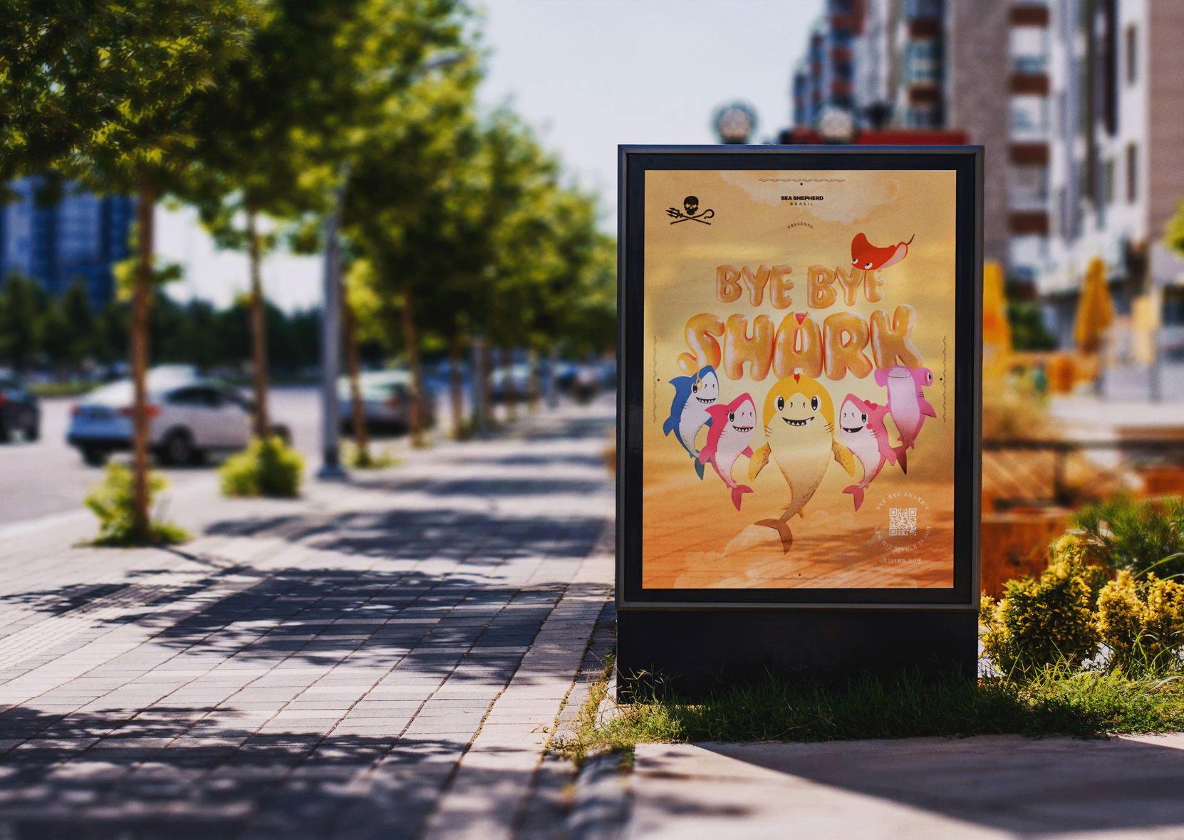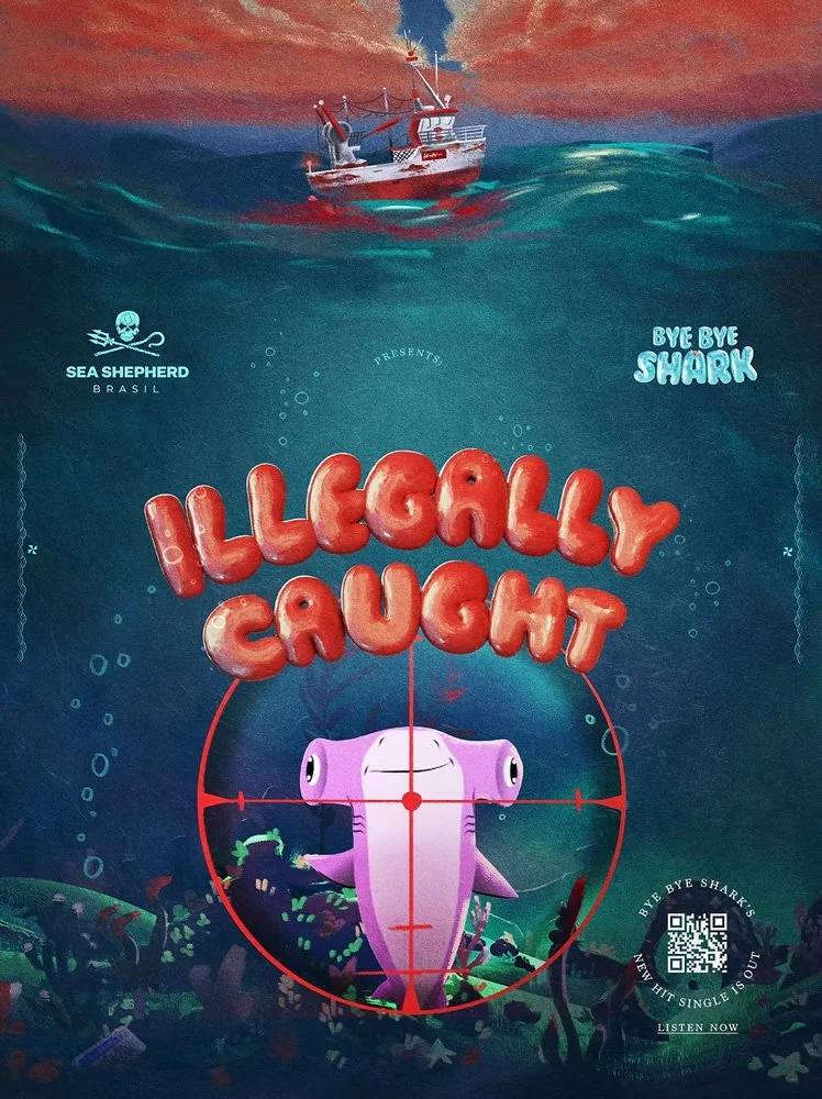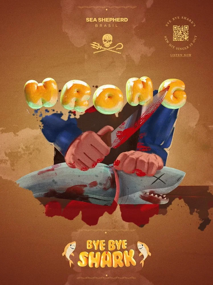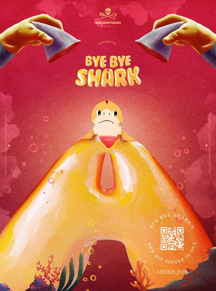 That’s why we created Bye Bye Shark, a distant cousin of Baby Shark. The cutest shark, the most charismatic one, and the star of one of the most famous songs in the world — now with a warning: the real danger is ending up on your plate. Together with Sea Shepherd Brasil, we launched this new character to raise awareness that more than 100 million sharks are killed every year.